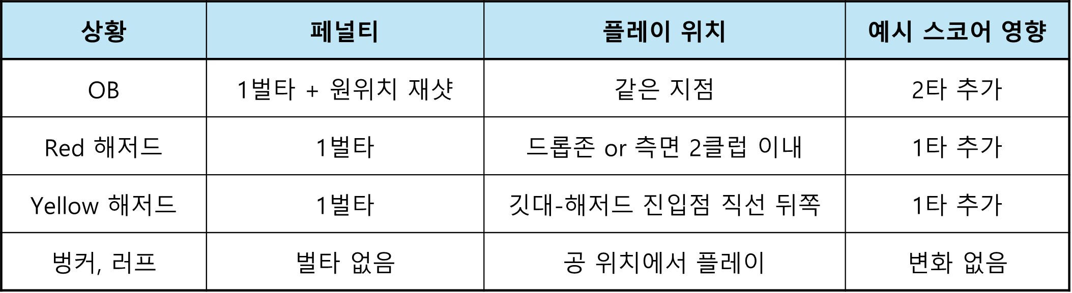 OB 시 2벌타 + 페어웨이 드롭 허용