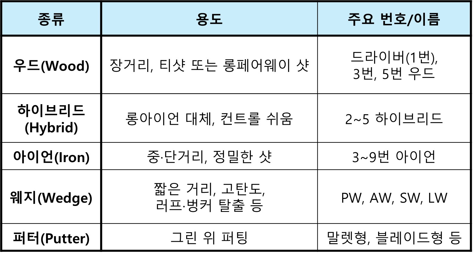 ▶ 용도: 짧은 거리, 벙커, 러프,
